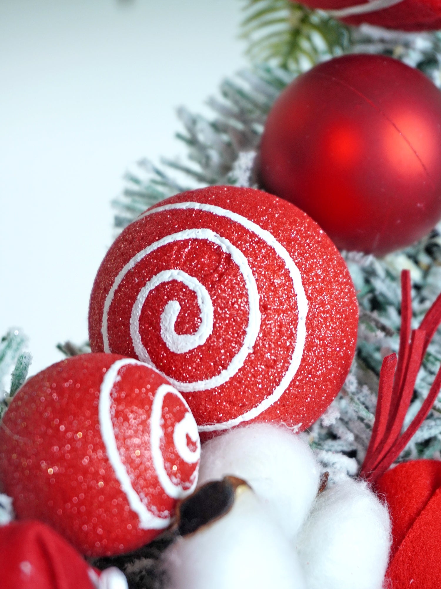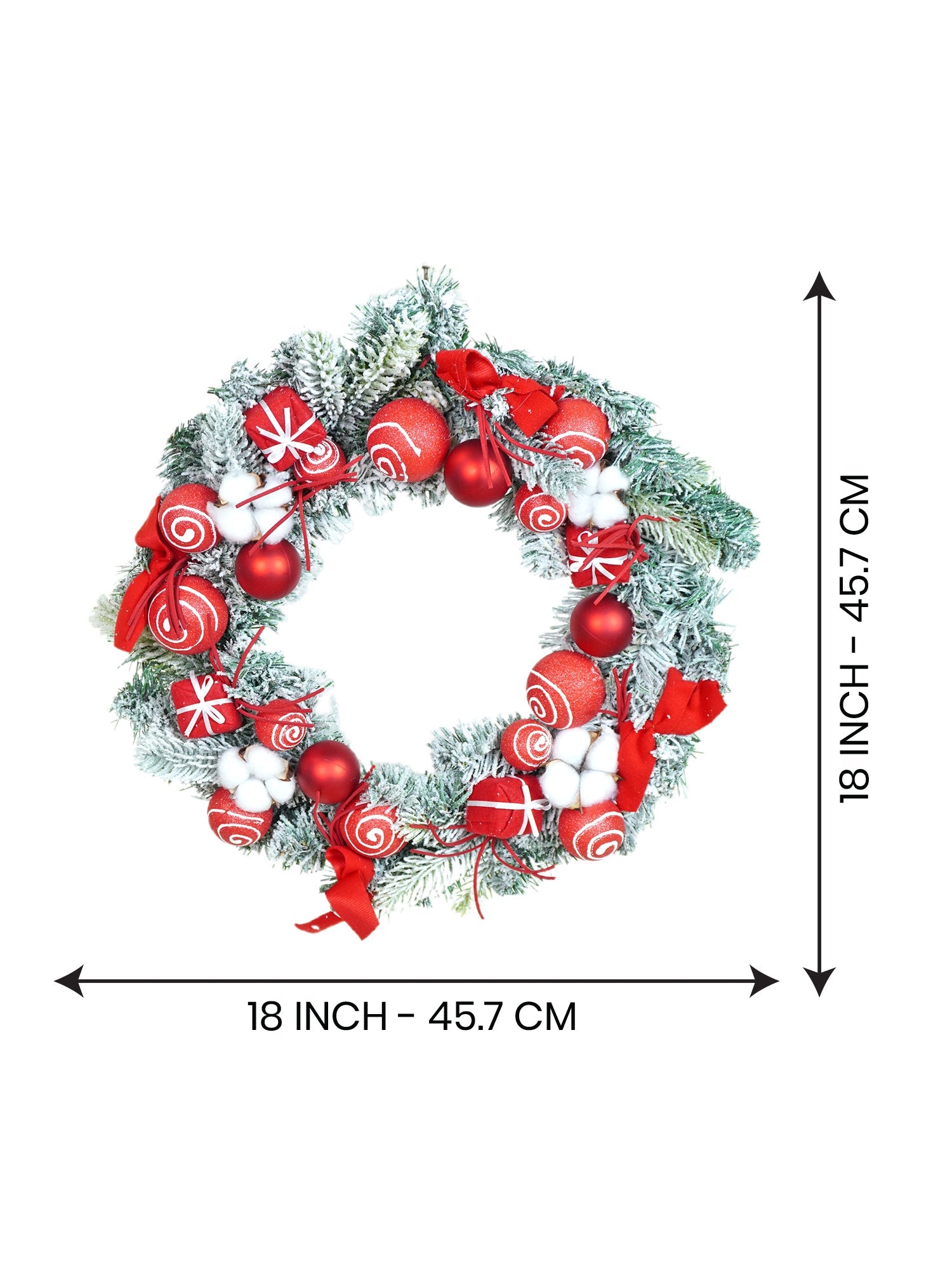 Red & White Swirl artificial Bushy Christmas Wreath for wall, Door and Tree Christmas Décor, 18 inches