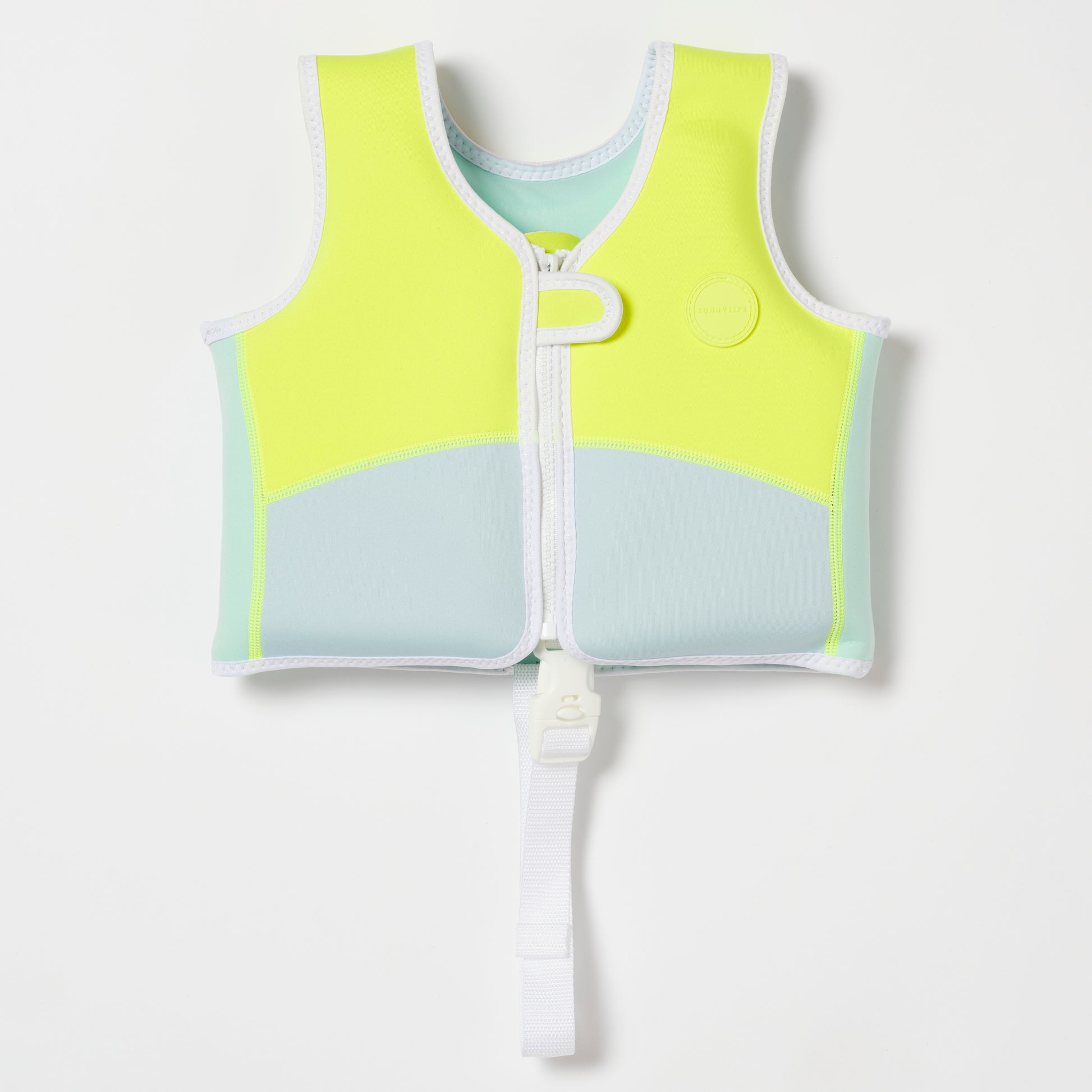 Boost your child's swim confidence with the Salty the Shark Swim Vest from SUNNYLiFE. Featuring a bright neon color, a 3D shark tail, simple zipper mechanism and safety strap between the legs, be sure to make a splash wherever you go!