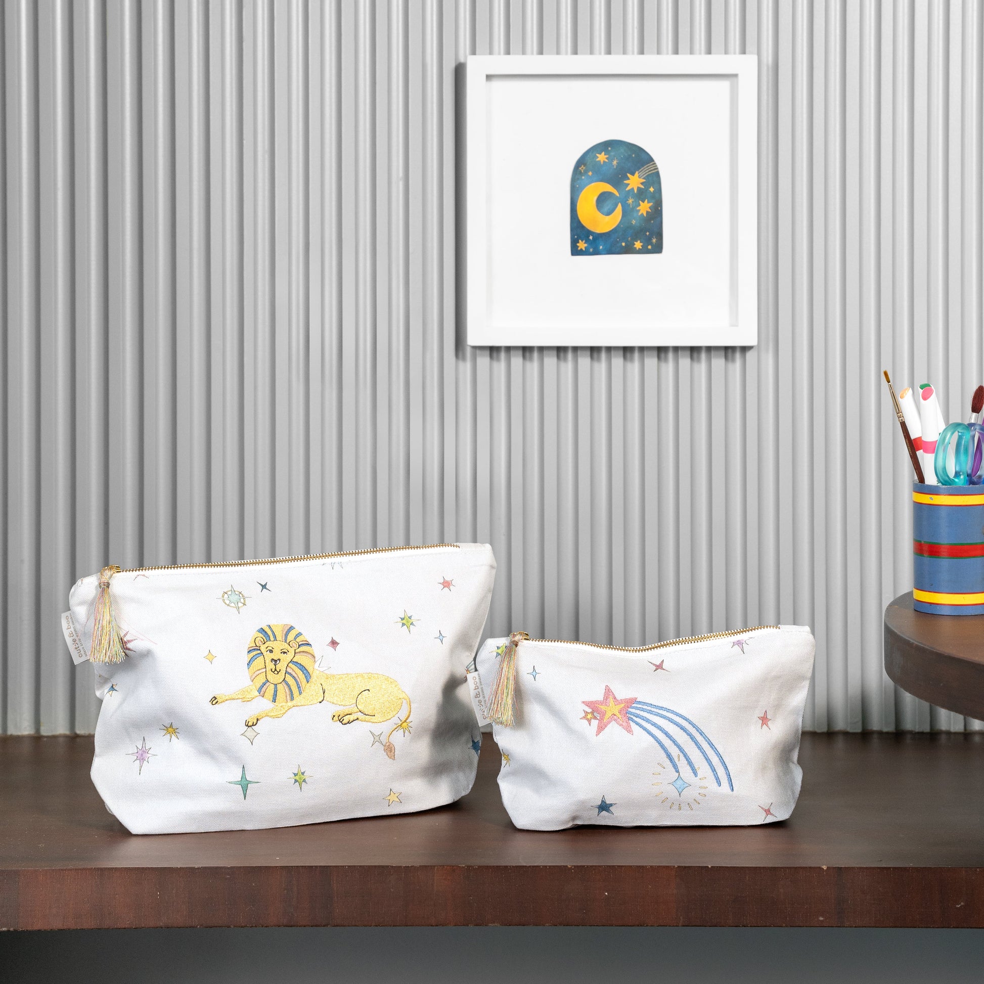 Keep all your little one’s treasures in order with this set of two pouches. Playful embroidered motifs make organizing fun for kids.