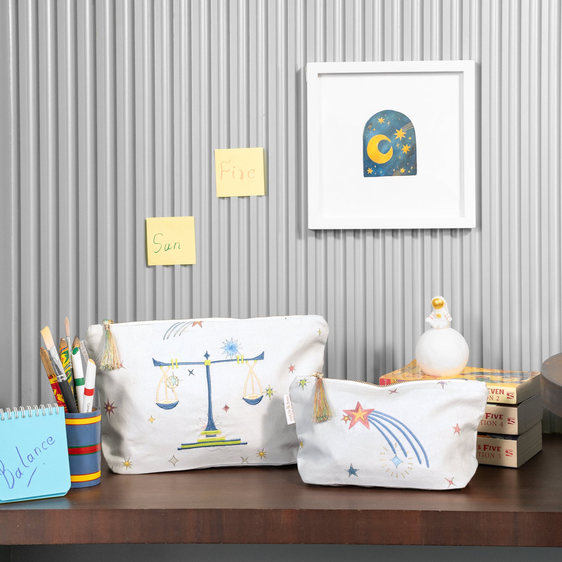 - Please note: Zodiac personalization is available only on the Large Pouch. Name personalization is available on both the Small and Big Pouches.