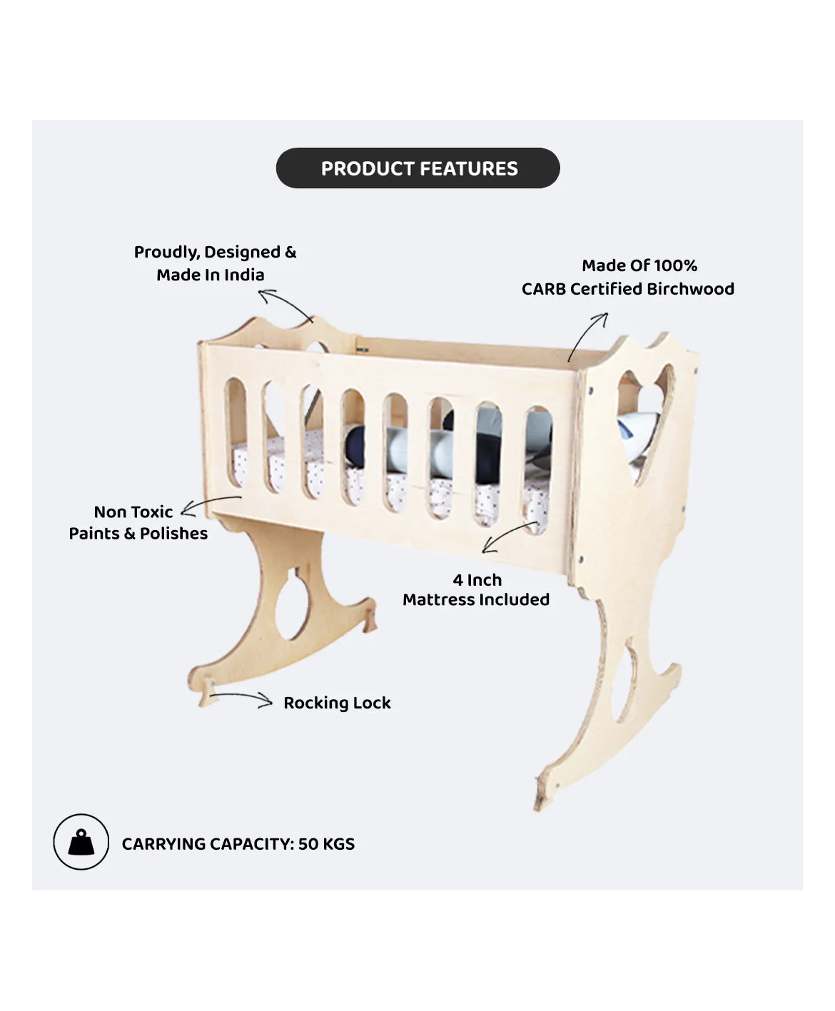 SWEN brings to you OLIVER - one of a kind, rocking baby bassinet. DIY your OLIVER, decorate it as you wish, attach the provided canopy, put in the most comfortable mattress and you are set to give your little one the time of his/her life. OLIVER promotes the capability of self-soothing in children by allowing them to rock their bed on their own. Instead of crying out for you every time your little develops skills to fall back asleep on their own by gentle swaying motion of the rocker as they move in it. Such activities also promotes a sense of independence and growth.