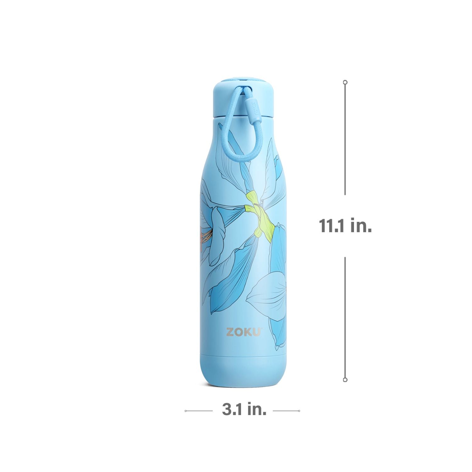 thinKitchen™ Zoku Stainless Steel Sky Lily Floral Bottle, Blue, 750ml