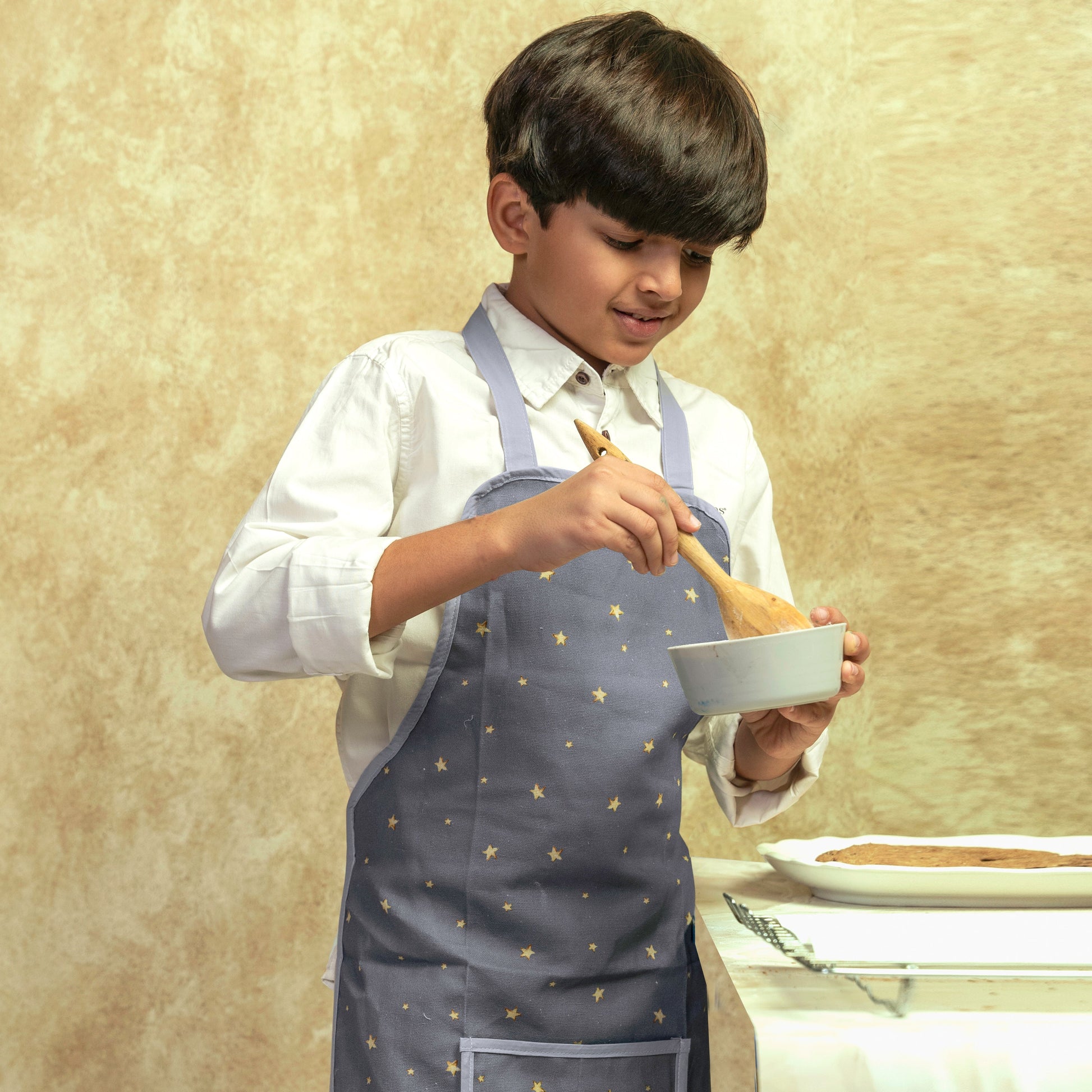 Let your little chef's skills dazzle with our To The Moon And Back Apron! Made of soft, breathable cotton, it features a beautiful print on the pocket. Perfect for keeping clothes clean while they mix, bake, and create kitchen magic!