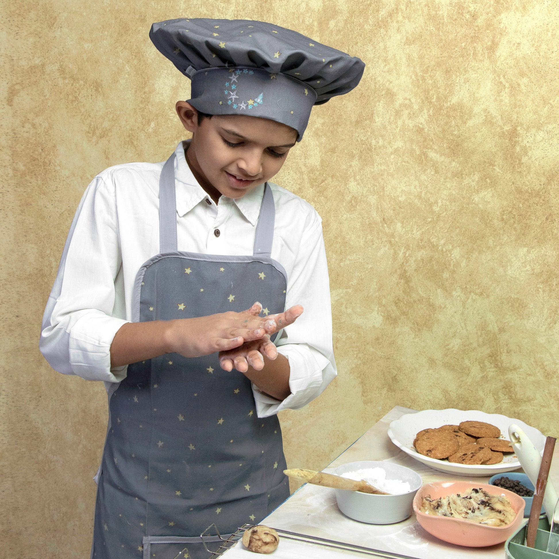This set is perfect for keeping your child's outfit clean as they explore the joy of cooking. It comes with an apron and a cap, so your little chef can fully immerse themselves in the magic of the kitchen.