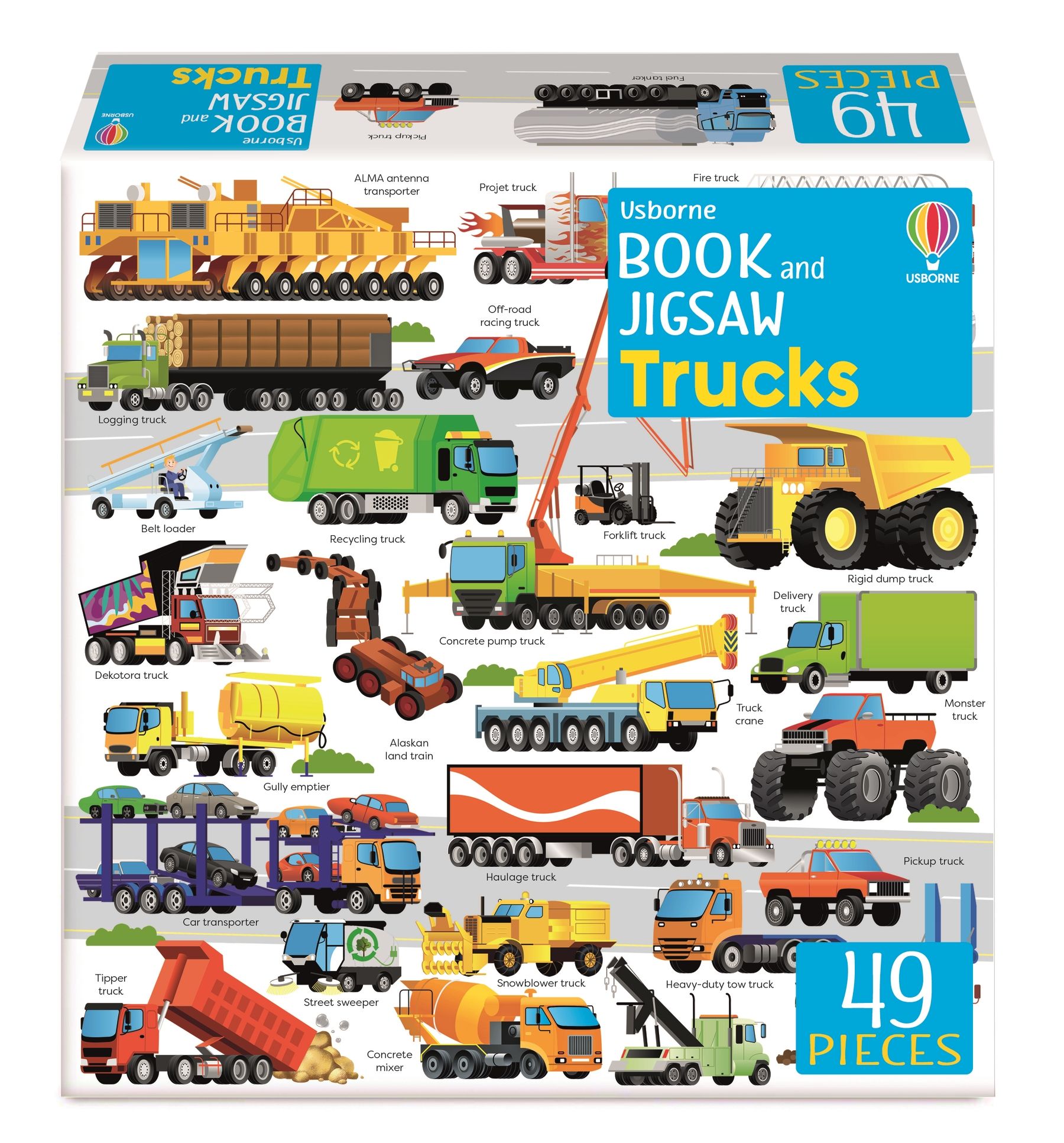 This book and jigsaw gift box is loaded with pictures of almost 30 of the largest, loudest, most powerful trucks. The brightly illustrated and informative book describes what each truck can do and gives statistics for its top speed, size, weight and power. It comes with a 49-piece jigsaw that young children will love putting together.