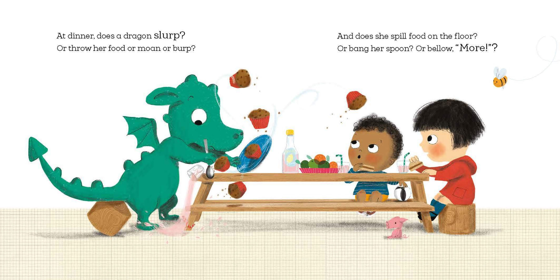 When a dragon comes to stay, will she behave herself? Why, of course she will. Obviously she knows she must share her toys and skip happily upstairs at bathtime. Well . . . not quite. Like all toddlers, this little dragon finds good manners a tiny bit tricky. It’s lucky she has some friends to help her . . . she is a DRAGON after all!